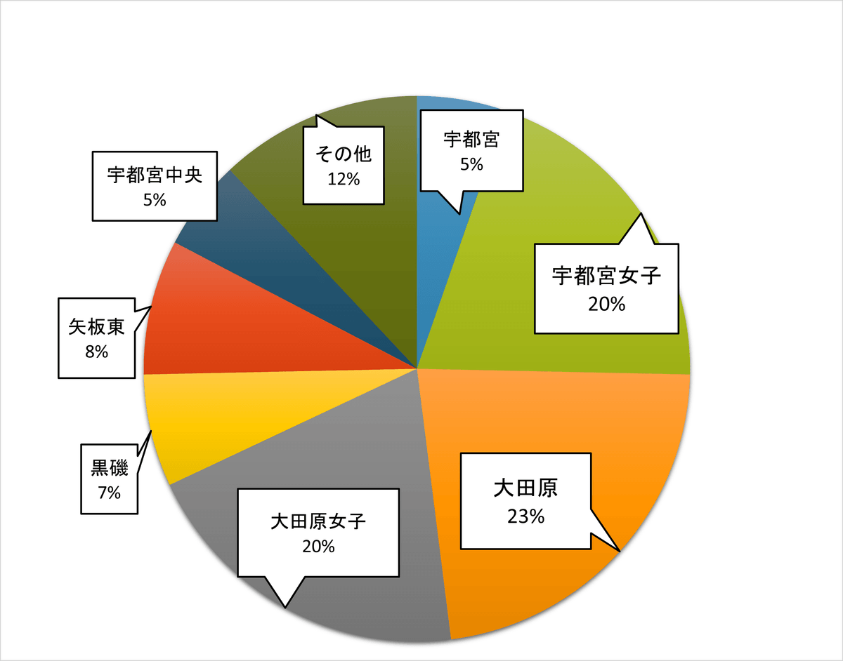 ・私立:作新学院高(トップ英進S1学力特待・英進選抜ほか)/宇都宮短大附属高(特別進学ほか)/文星芸大附属(英進科Ⅱ類)